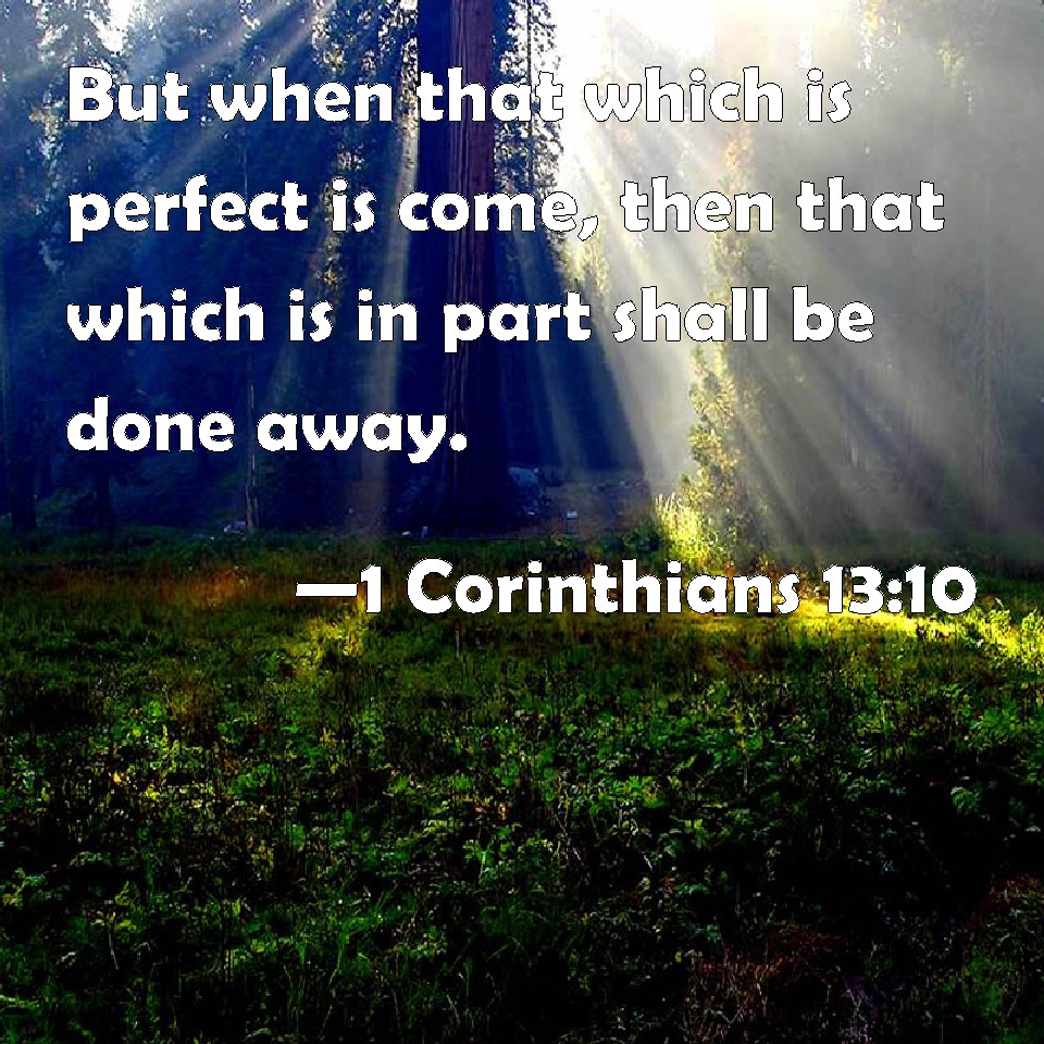 1 Corinthians 13:10 But when that which is perfect is come, then that which is in part shall be done away.