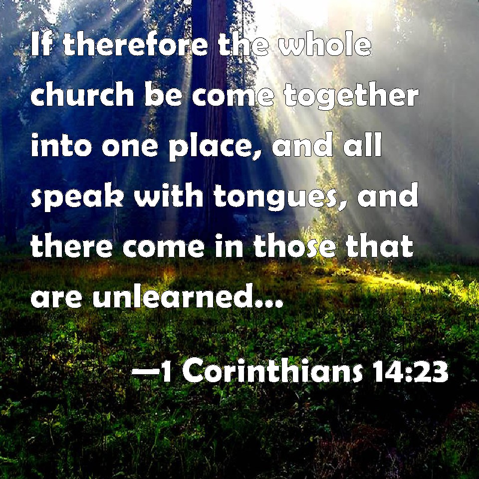 Choose a Background 1 Corinthians 14:23 If therefore the whole church be come together into one place, and all speak with tongues, and there come in those that are unlearned, or unbelievers, will they not say that you are mad? KJV: If therefore the whole church be come together into one place, and all speak with tongues, and there come in those that are unlearned, or unbelievers, will they not say that ye are mad? DRB: If therefore the whole church come together into one place, and all speak with tongues, and there come in unlearned persons or infidels, will they not say that you are mad ? DBT: If therefore the whole assembly come together in one place, and all speak with tongues, and simple persons enter in, or unbelievers, will not they say ye are mad? ERV: If therefore the whole church be assembled together, and all speak with tongues, and there come in men unlearned or unbelieving, will they not say that ye are mad? WBT: If therefore the whole church is assembled in one place, and all speak in languages, and there come in those that are unlearned, or unbelievers, will they not say that ye are insane? WEB: If therefore the whole assembly is assembled together and all speak with other languages, and unlearned or unbelieving people come in, won't they say that you are crazy? YLT: If, therefore, the whole assembly may come together, to the same place, and all may speak with tongues, and there may come in unlearned or unbelievers, will they not say that ye are mad?Links 1 Corinthians 14:23 NIV • 1 Corinthians 14:23 NLT • 1 Corinthians 14:23 ESV • 1 Corinthians 14:23 NASB • 1 Corinthians 14:23 KJV • 1 Corinthians 14:23 Interlinear • 1 Corinthians 14:23 Commentaries • 1 Corinthians 14:23 Parallel Texts • 1 Corinthians 14:23 Bible Apps • 1 Corinthians 14:23 Parallel • Bible Hub |