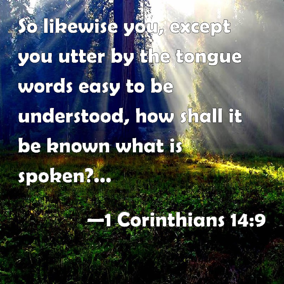 Choose a Background 1 Corinthians 14:9 So likewise you, except you utter by the tongue words easy to be understood, how shall it be known what is spoken? for you shall speak into the air. KJV: So likewise ye, except ye utter by the tongue words easy to be understood, how shall it be known what is spoken? for ye shall speak into the air. DRB: So likewise you, except you utter by the tongue plain speech, how shall it be known what is said ? For you shall be speaking into the air. DBT: Thus also ye with the tongue, unless ye give a distinct speech, how shall it be known what is spoken? for ye will be speaking to the air. ERV: So also ye, unless ye utter by the tongue speech easy to be understood, how shall it be known what is spoken? for ye will be speaking into the air. WBT: So likewise ye, except ye utter by the tongue words easy to be understood, how shall it be known what is spoken? for ye will speak into the air. WEB: So also you, unless you uttered by the tongue words easy to understand, how would it be known what is spoken? For you would be speaking into the air. YLT: so also ye, if through the tongue, speech easily understood ye may not give — how shall that which is spoken be known? for ye shall be speaking to air.Links 1 Corinthians 14:9 NIV • 1 Corinthians 14:9 NLT • 1 Corinthians 14:9 ESV • 1 Corinthians 14:9 NASB • 1 Corinthians 14:9 KJV • 1 Corinthians 14:9 Interlinear • 1 Corinthians 14:9 Commentaries • 1 Corinthians 14:9 Parallel Texts • 1 Corinthians 14:9 Bible Apps • 1 Corinthians 14:9 Parallel • Bible Hub |