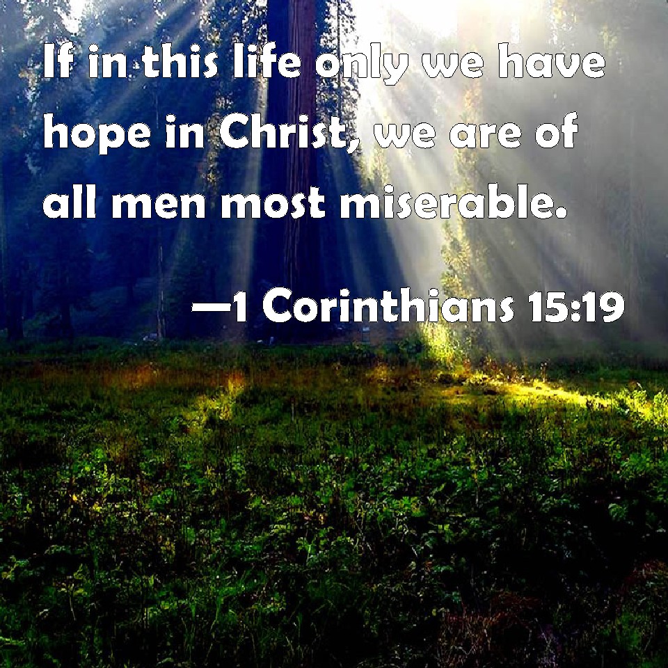 1 Corinthians 15:19 If in this life only we have hope in Christ, we are of all men most miserable.