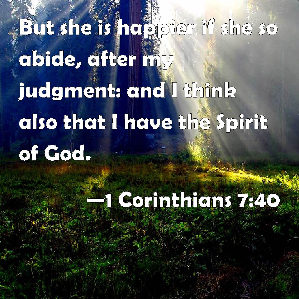 1 Corinthians 7:40 But she is happier if she so abide, after my judgment: and I think also that I have the Spirit of God.