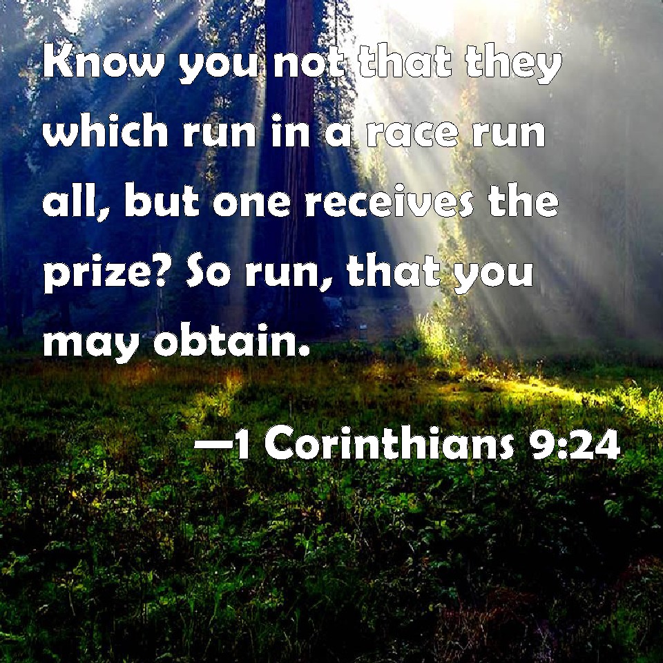 Choose a Background 1 Corinthians 9:24 Know you not that they which run in a race run all, but one receives the prize? So run, that you may obtain. KJV: Know ye not that they which run in a race run all, but one receiveth the prize? So run, that ye may obtain. DRB: Know you not that they that run in the race, all run indeed, but one receiveth the prize ? So run that you may obtain. DBT: Know ye not that they who run in the race-course run all, but one receives the prize? Thus run in order that ye may obtain. ERV: Know ye not that they which run in a race run all, but one receiveth the prize? Even so run, that ye may attain. WBT: Know ye not, that they who run in a race, all run, but one receiveth the prize? So run, that ye may obtain. WEB: Don't you know that those who run in a race all run, but one receives the prize? Run like that, that you may win. YLT: have ye not known that those running in a race — all indeed run, but one doth receive the prize? so run ye, that ye may obtain;Links 1 Corinthians 9:24 NIV • 1 Corinthians 9:24 NLT • 1 Corinthians 9:24 ESV • 1 Corinthians 9:24 NASB • 1 Corinthians 9:24 KJV • 1 Corinthians 9:24 Interlinear • 1 Corinthians 9:24 Commentaries • 1 Corinthians 9:24 Parallel Texts • 1 Corinthians 9:24 Bible Apps • 1 Corinthians 9:24 Parallel • Bible Hub |