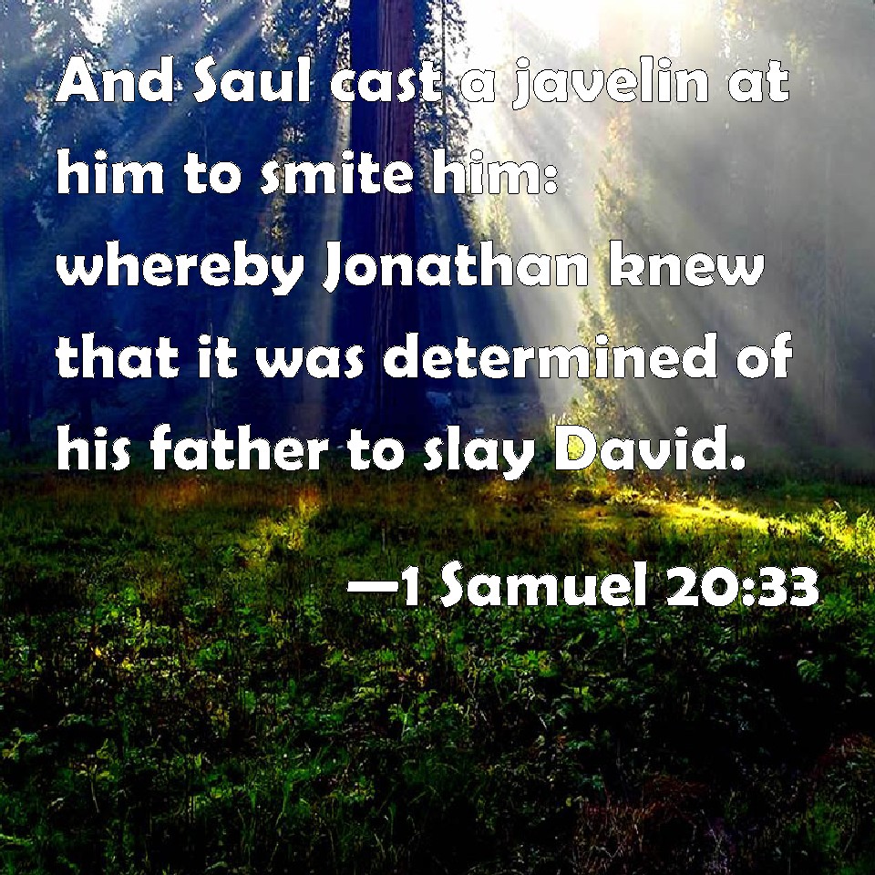 1 Samuel 20:33 And Saul cast a javelin at him to smite him: whereby Jonathan knew that it was determined of his father to slay David.