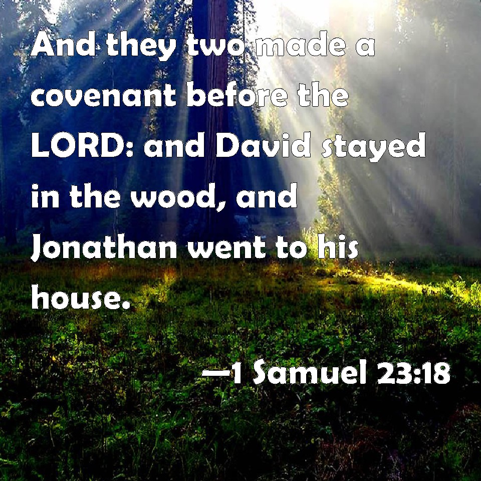 1 Samuel 23:18 And they two made a covenant before the LORD: and David stayed in the wood, and Jonathan went to his house.