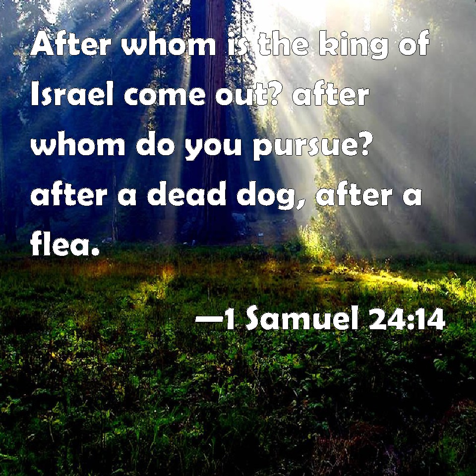 1 Samuel 24:14 After whom is the king of Israel come out? after whom do you pursue? after a dead dog, after a flea.