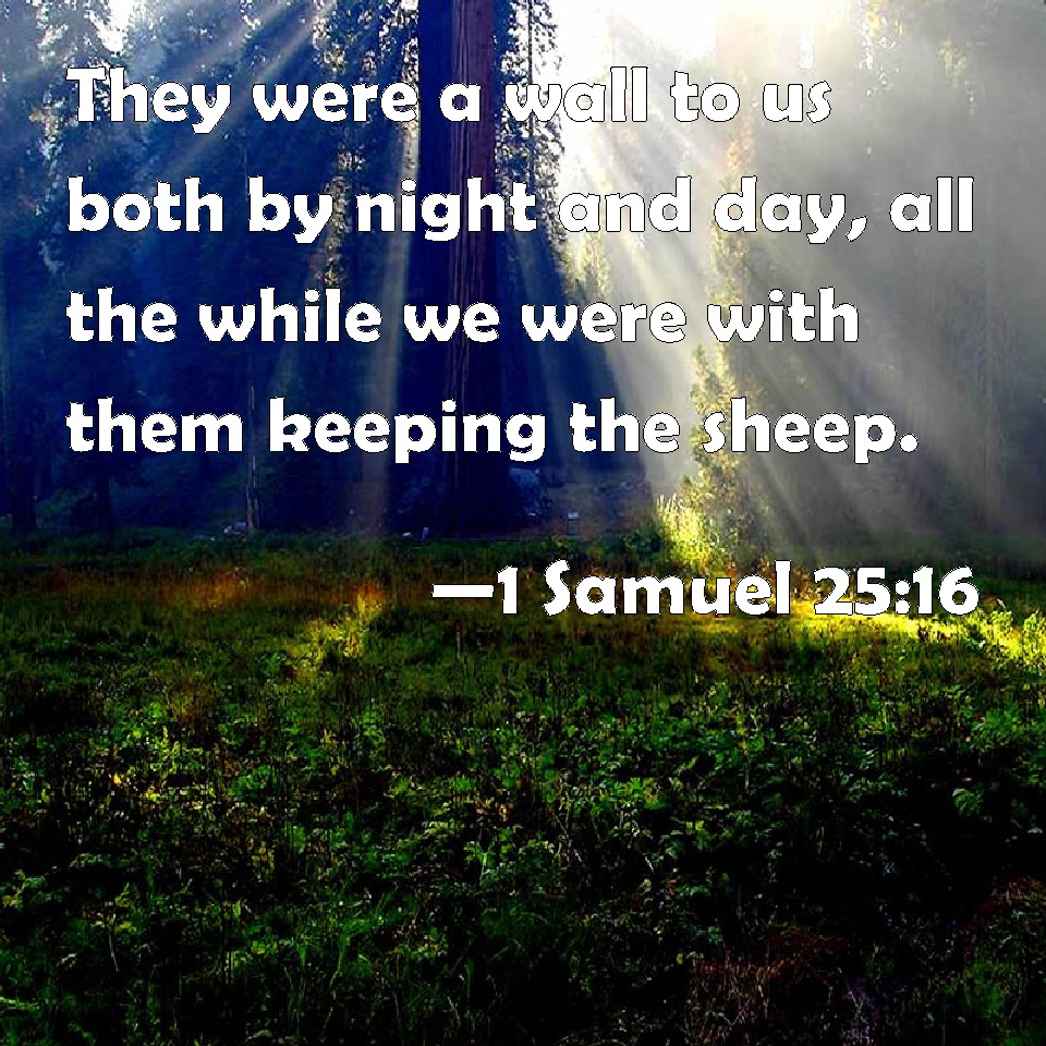 1 Samuel 25:16 They were a wall to us both by night and day, all the while we were with them keeping the sheep.