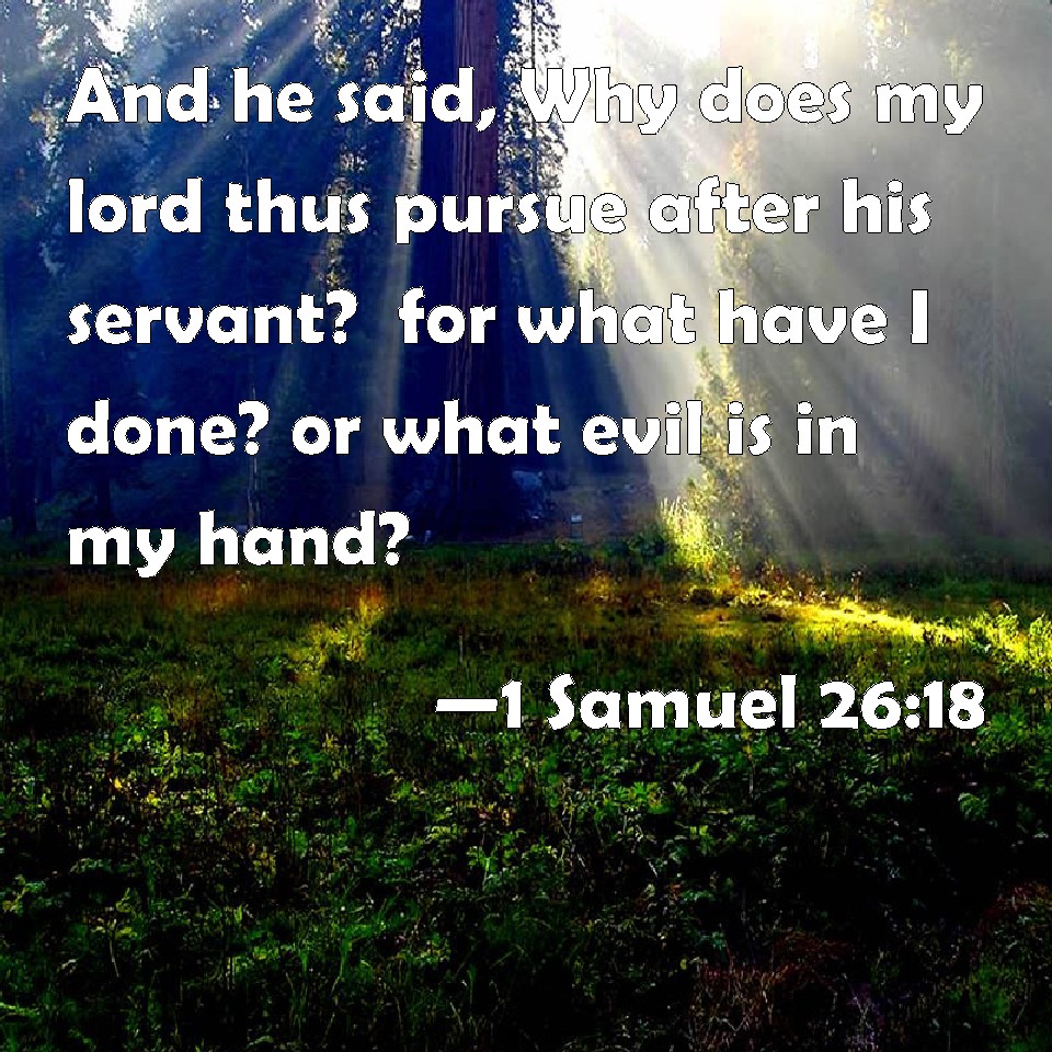 1 Samuel 26:18 And he said, Why does my lord thus pursue after his servant? for what have I done? or what evil is in my hand?