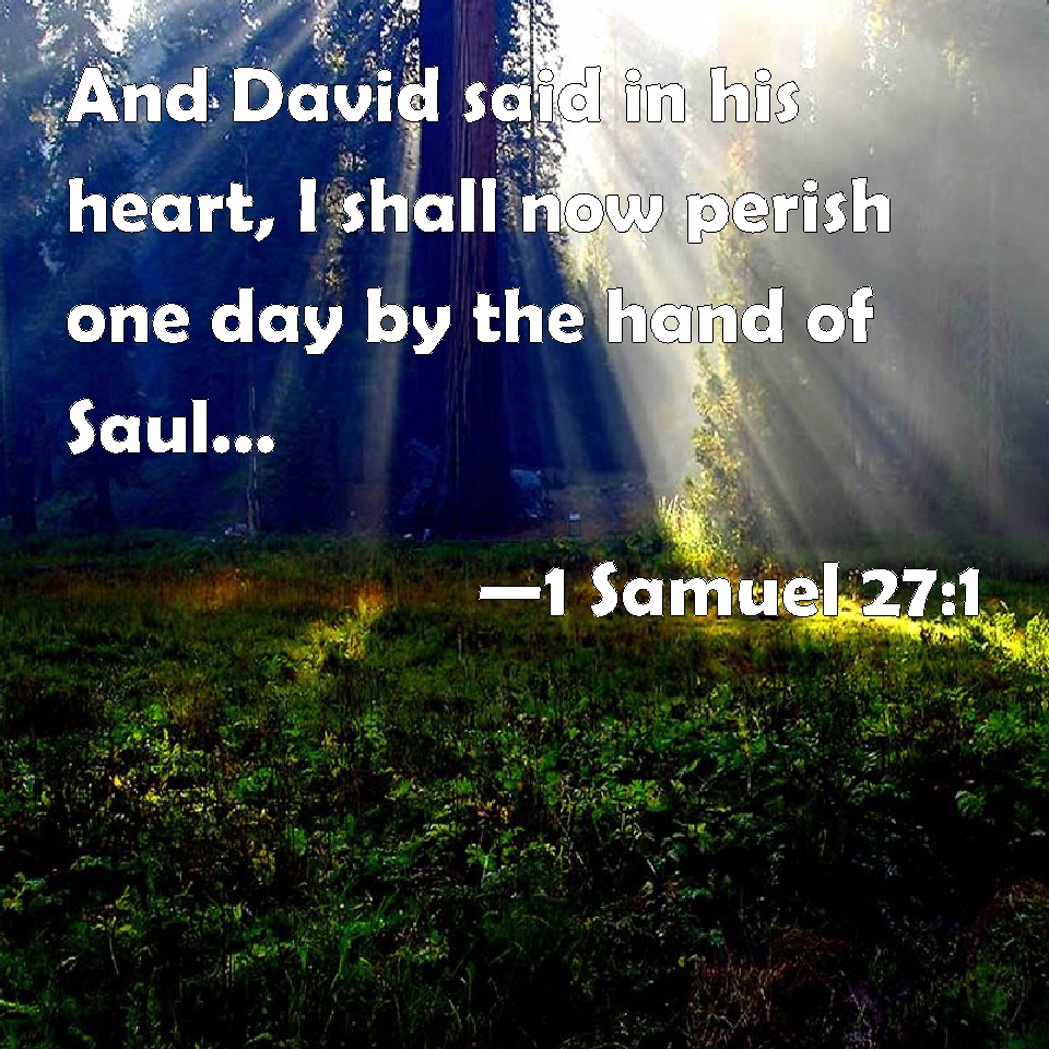 1 Samuel 27:1 And David said in his heart, I shall now perish one day by the hand of Saul: there is nothing better for me than that I should speedily escape into the land of the Philistines; and Saul shall despair of me, to seek me any more in any coast of Israel: so shall I escape out of his hand.