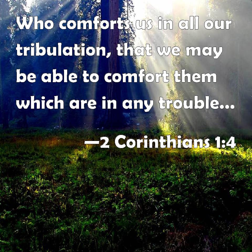 Choose a Background 2 Corinthians 1:4 Who comforts us in all our tribulation, that we may be able to comfort them which are in any trouble, by the comfort with which we ourselves are comforted of God. KJV: Who comforteth us in all our tribulation, that we may be able to comfort them which are in any trouble, by the comfort wherewith we ourselves are comforted of God. DRB: Who comforteth us in all our tribulation; that we also may be able to comfort them who are in all distress, by the exhortation wherewith we also are exhorted by God. DBT: who encourages us in all our tribulation, that we may be able to encourage those who are in any tribulation whatever, through the encouragement with which we ourselves are encouraged of God. ERV: who comforteth us in all our affliction, that we may be able to comfort them that are in any affliction, through the comfort wherewith we ourselves are comforted of God. WBT: Who comforteth us in all our tribulation, that we may be able to comfort them who are in any trouble by the consolation with which we ourselves are comforted by God. WEB: who comforts us in all our affliction, that we may be able to comfort those who are in any affliction, through the comfort with which we ourselves are comforted by God. YLT: who is comforting us in all our tribulation, for our being able to comfort those in any tribulation through the comfort with which we are comforted ourselves by God;Links 2 Corinthians 1:4 NIV • 2 Corinthians 1:4 NLT • 2 Corinthians 1:4 ESV • 2 Corinthians 1:4 NASB • 2 Corinthians 1:4 KJV • 2 Corinthians 1:4 Interlinear • 2 Corinthians 1:4 Commentaries • 2 Corinthians 1:4 Parallel Texts • 2 Corinthians 1:4 Bible Apps • 2 Corinthians 1:4 Parallel • Bible Hub |