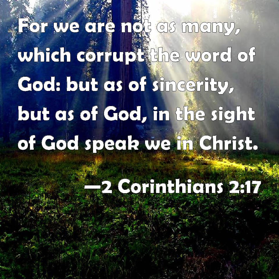 2 Corinthians 2:17 For we are not as many, which corrupt the word of God: but as of sincerity, but as of God, in the sight of God speak we in Christ.