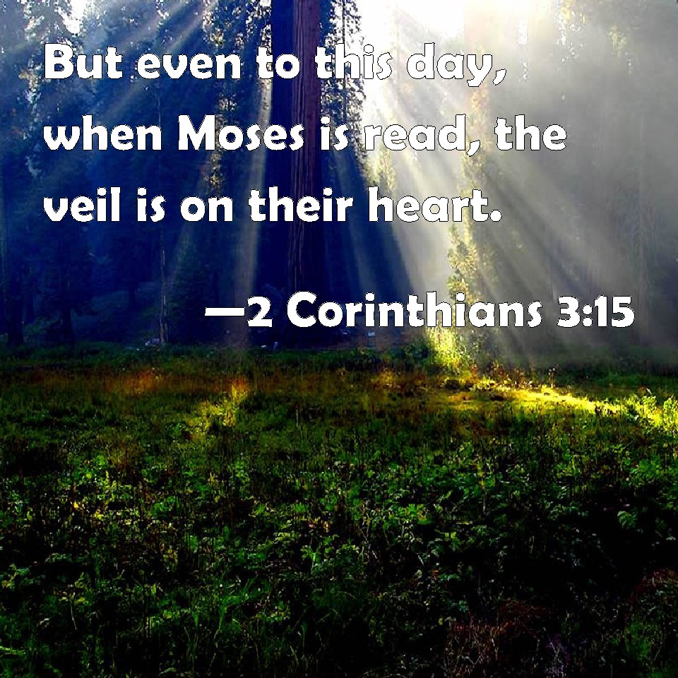 Choose a Background 2 Corinthians 3:15 But even to this day, when Moses is read, the veil is on their heart. KJV: But even unto this day, when Moses is read, the vail is upon their heart. DRB: But even until this day, when Moses is read, the veil is upon their heart. DBT: But unto this day, when Moses is read, the veil lies upon their heart. ERV: But unto this day, whensoever Moses is read, a veil lieth upon their heart. WBT: But even to this day, when Moses is read, the vail is upon their heart. WEB: But to this day, when Moses is read, a veil lies on their heart. YLT: but till to-day, when Moses is read, a vail upon their heart doth lie,Links 2 Corinthians 3:15 NIV • 2 Corinthians 3:15 NLT • 2 Corinthians 3:15 ESV • 2 Corinthians 3:15 NASB • 2 Corinthians 3:15 KJV • 2 Corinthians 3:15 Interlinear • 2 Corinthians 3:15 Commentaries • 2 Corinthians 3:15 Parallel Texts • 2 Corinthians 3:15 Bible Apps • 2 Corinthians 3:15 Parallel • Bible Hub |