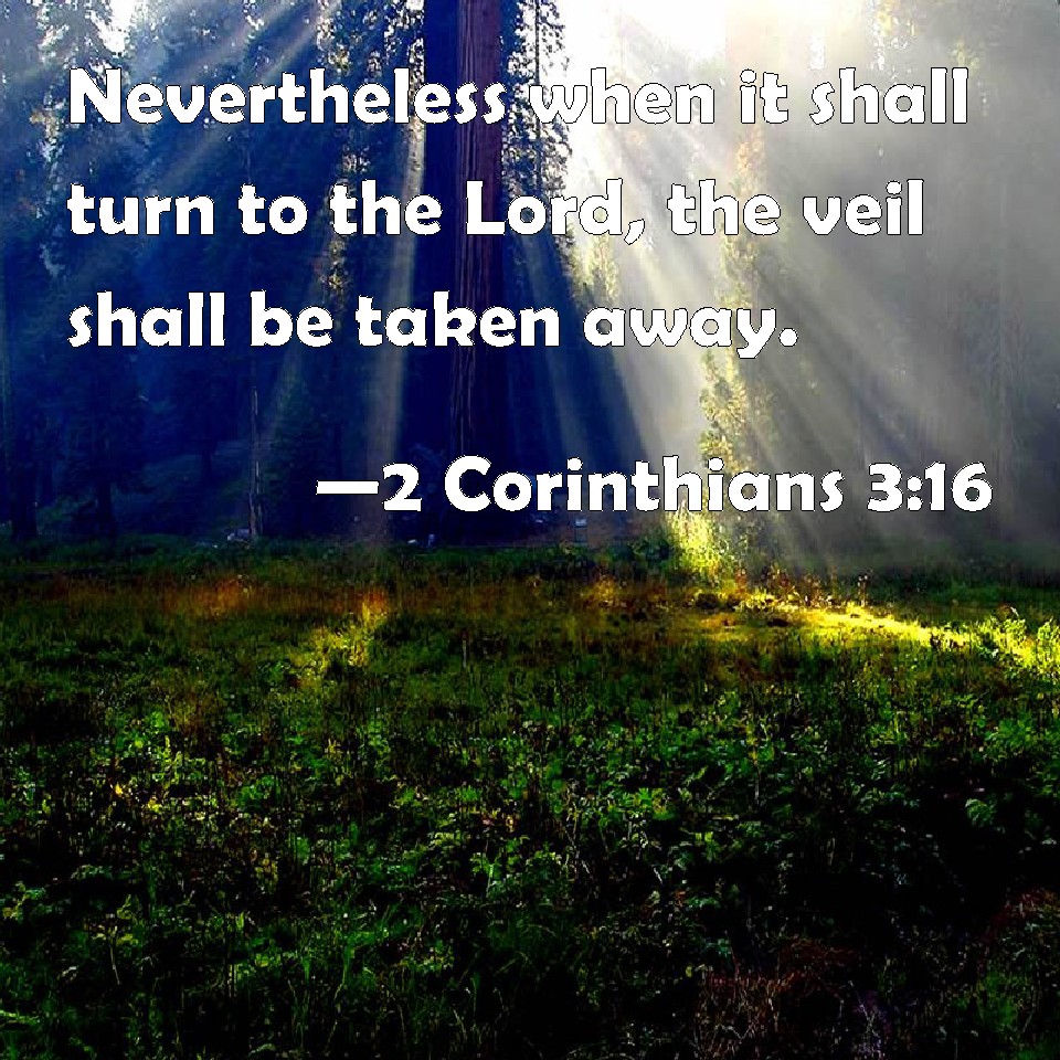 2 Corinthians 3:16 Nevertheless when it shall turn to the Lord, the veil shall be taken away.
