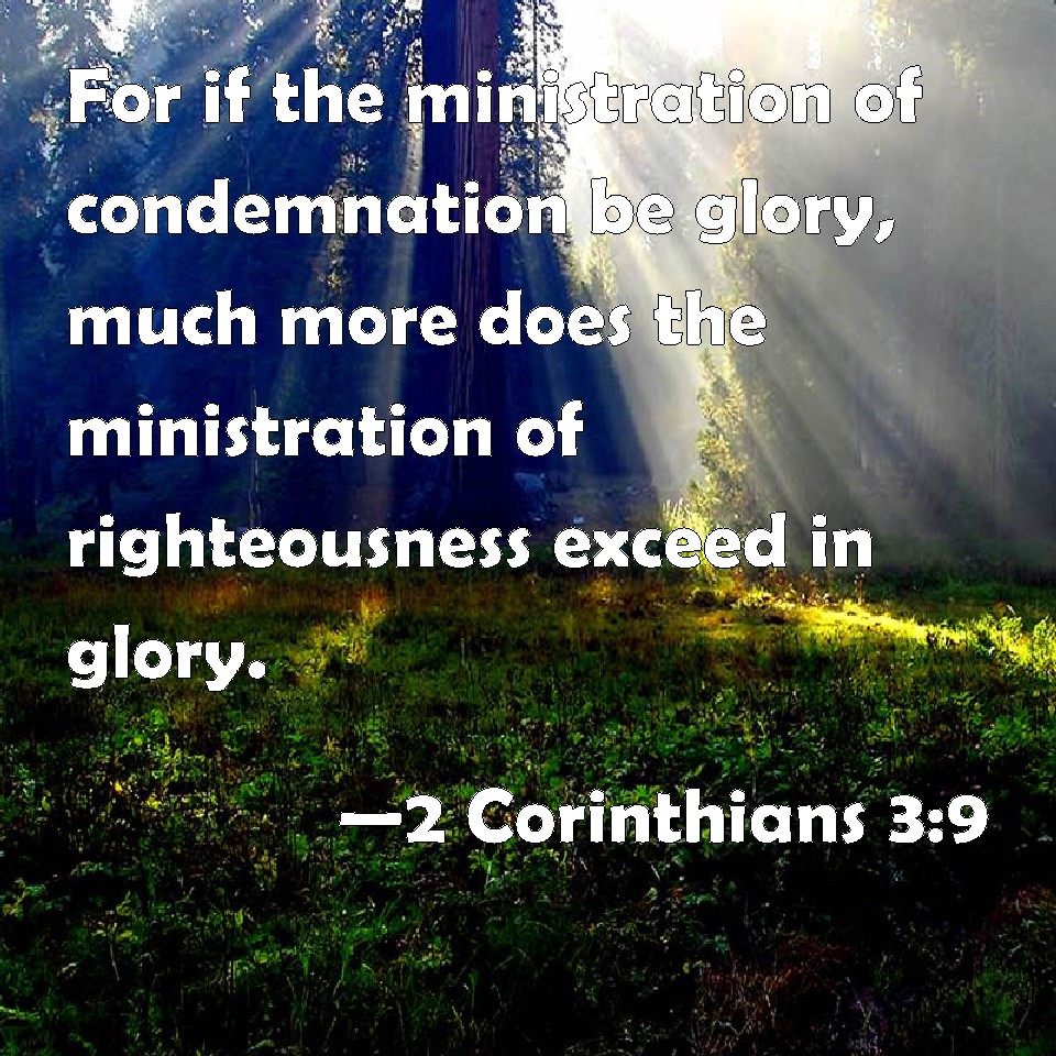 2 Corinthians 3:9 For if the ministration of condemnation be glory, much more does the ministration of righteousness exceed in glory.