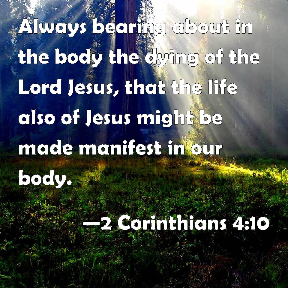 2 Corinthians 4:10 Always bearing about in the body the dying of the Lord Jesus, that the life also of Jesus might be made manifest in our body.