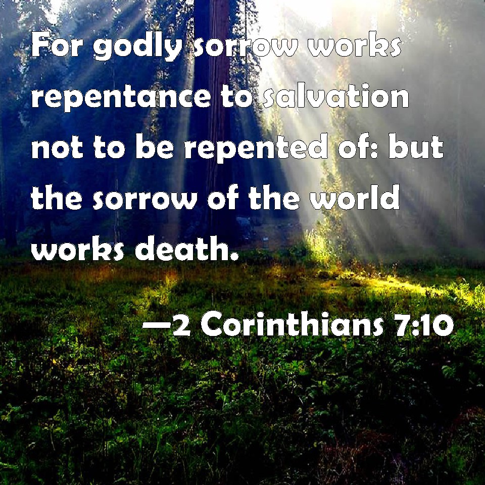 2 Corinthians 7:10 For godly sorrow works repentance to salvation not to be repented of: but the sorrow of the world works death.