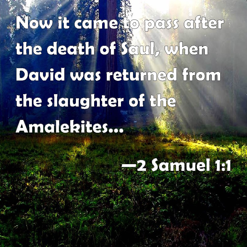 Choose a Background 2 Samuel 1:1 Now it came to pass after the death of Saul, when David was returned from the slaughter of the Amalekites, and David had stayed two days in Ziklag; KJV: Now it came to pass after the death of Saul, when David was returned from the slaughter of the Amalekites, and David had abode two days in Ziklag; DRB: Now it came to pass, after Saul was dead, that David returned from the slaughter of the Amalecites, and abode two days in Siceleg. DBT: And it came to pass after the death of Saul, when David had returned from the slaughter of the Amalekites, that David abode two days in Ziklag. ERV: And it came to pass after the death of Saul, when David was returned from the slaughter of the Amalekites, and David had abode two days in Ziklag; WBT: Now it came to pass after the death of Saul, when David had returned from the slaughter of the Amalekites, and David had abode two days in Ziklag; WEB: It happened after the death of Saul, when David was returned from the slaughter of the Amalekites, and David had stayed two days in Ziklag; YLT: And it cometh to pass, after the death of Saul, that David hath returned from smiting the Amalekite, and David dwelleth in Ziklag two days,Links 2 Samuel 1:1 NIV • 2 Samuel 1:1 NLT • 2 Samuel 1:1 ESV • 2 Samuel 1:1 NASB • 2 Samuel 1:1 KJV • 2 Samuel 1:1 Interlinear • 2 Samuel 1:1 Commentaries • 2 Samuel 1:1 Parallel Texts • 2 Samuel 1:1 Bible Apps • 2 Samuel 1:1 Parallel • Bible Hub |
