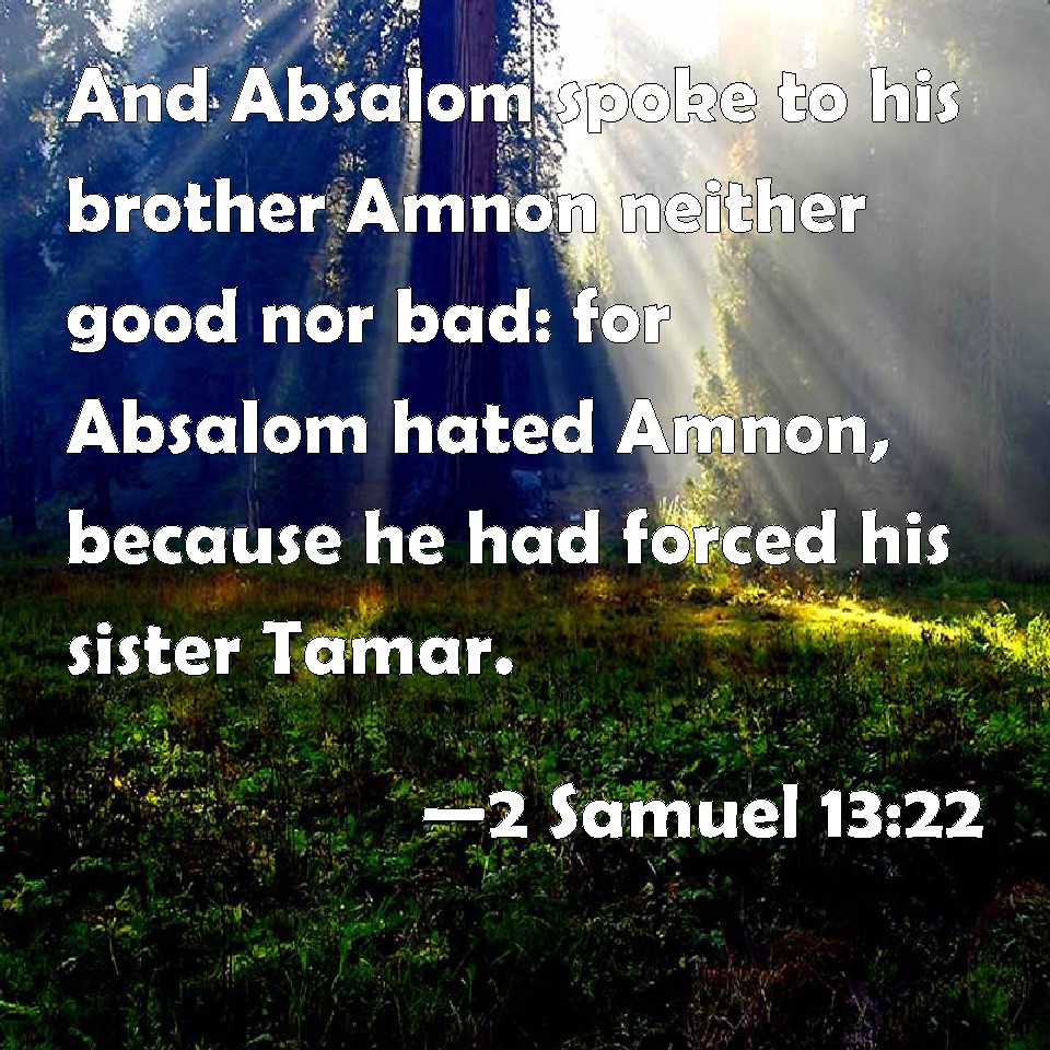2 Samuel 13:22 And Absalom spoke to his brother Amnon neither good nor bad: for Absalom hated Amnon, because he had forced his sister Tamar.