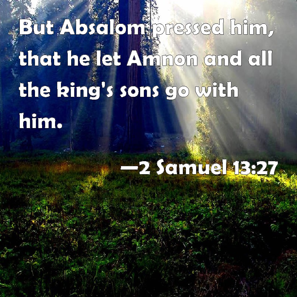 2 Samuel 13:27 But Absalom pressed him, that he let Amnon and all the king's sons go with him.