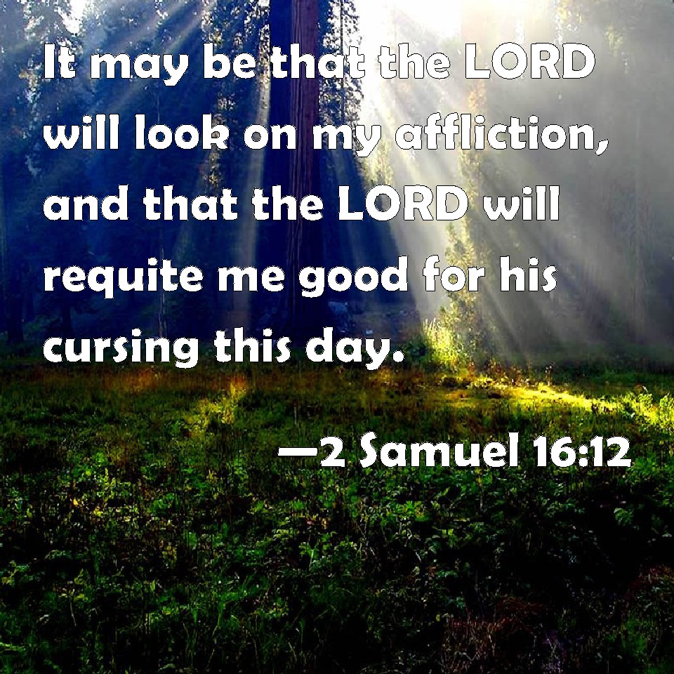 2 Samuel 16:12 It may be that the LORD will look on my affliction, and that the LORD will requite me good for his cursing this day.