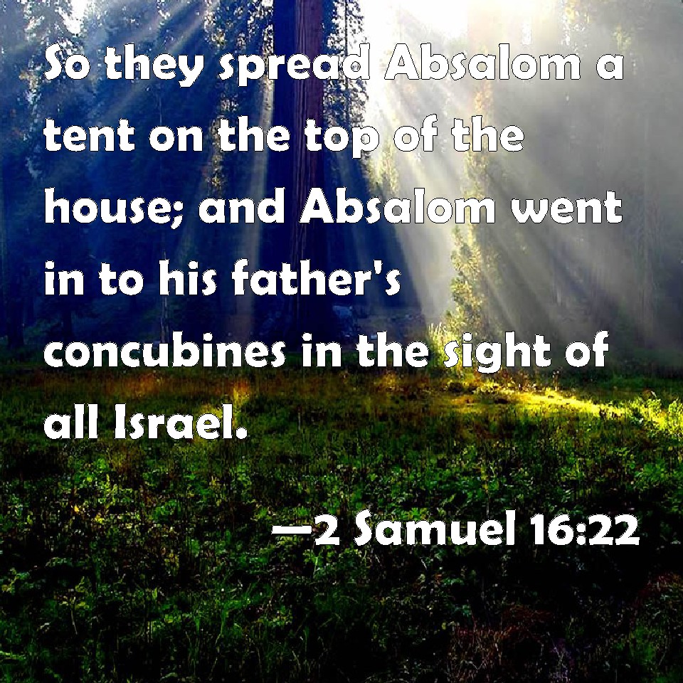 And they spread out for Absalom the tent on the roof, and Absalom goeth in unto the concubines of his father before the eyes of all Israel.