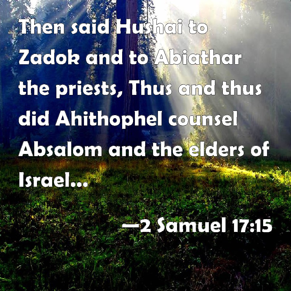 Then said Hushai to Zadok and to Abiathar the priests, Thus and thus did Ahithophel counsel Absalom and the elders of Israel; and thus and thus have I counseled.