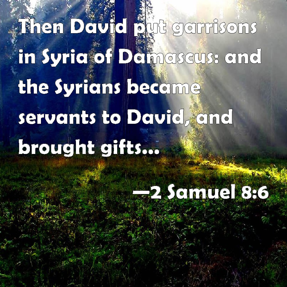 2 Samuel 8:6 Then David put garrisons in Syria of Damascus: and the Syrians became servants to David, and brought gifts. And the LORD preserved David wherever he went.