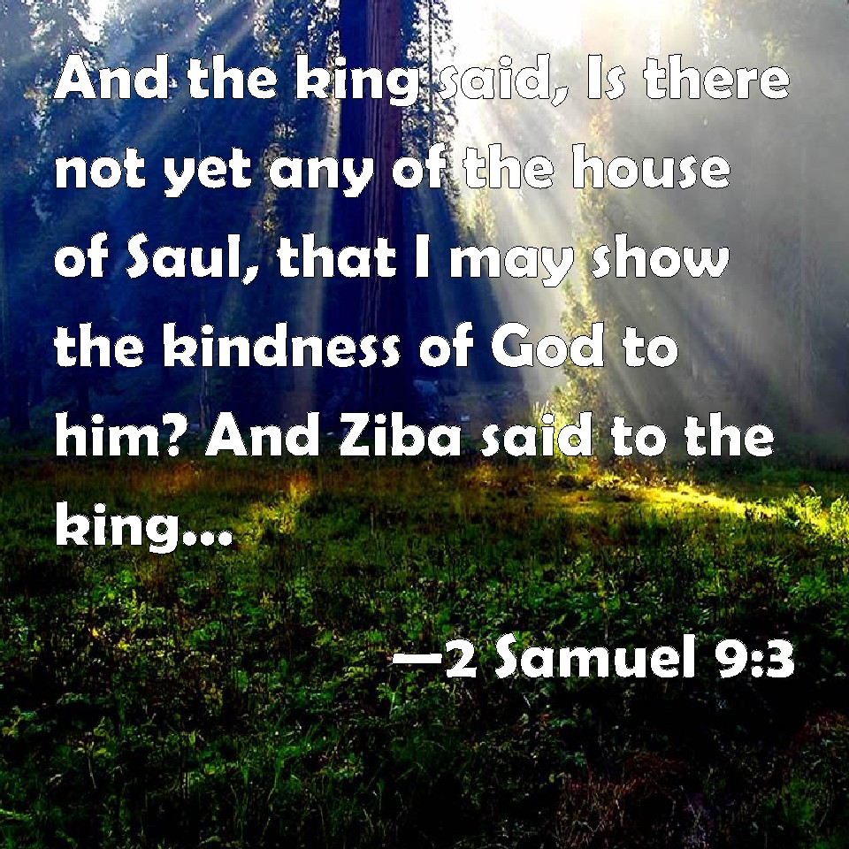 Choose a Background 2 Samuel 9:3 And the king said, Is there not yet any of the house of Saul, that I may show the kindness of God to him? And Ziba said to the king, Jonathan has yet a son, which is lame on his feet. KJV: And the king said, Is there not yet any of the house of Saul, that I may shew the kindness of God unto him? And Ziba said unto the king, Jonathan hath yet a son, which is lame on his feet. DRB: And the king said: Is there any one left of the house of Saul, that I may shew the mercy of God unto him? And Siba said to the king: There is a son of Jonathan left, who is lame of his feet. DBT: And the king said, Is there not yet any of the house of Saul, that I may shew the kindness of God to him? And Ziba said to the king, Jonathan has yet a son, who is lame on his feet. ERV: And the king said, Is there not yet any of the house of Saul, that I may shew the kindness of God unto him? And Ziba said unto the king, Jonathan hath yet a son, which is lame on his feet. WBT: And the king said, Is there not yet any of the house of Saul, that I may show the kindness of God to him? and Ziba said to the king, Jonathan hath yet a son, who is lame in his feet. WEB: The king said, "Is there not yet any of the house of Saul, that I may show the kindness of God to him?" Ziba said to the king, "Jonathan has yet a son, who is lame of his feet." YLT: And the king saith, 'Is there not yet a man to the house of Saul, and I do with him the kindness of God?' And Ziba saith unto the king, 'Jonathan hath yet a son — lame.'Links 2 Samuel 9:3 NIV • 2 Samuel 9:3 NLT • 2 Samuel 9:3 ESV • 2 Samuel 9:3 NASB • 2 Samuel 9:3 KJV • 2 Samuel 9:3 Interlinear • 2 Samuel 9:3 Commentaries • 2 Samuel 9:3 Parallel Texts • 2 Samuel 9:3 Bible Apps • 2 Samuel 9:3 Parallel • Bible Hub |
