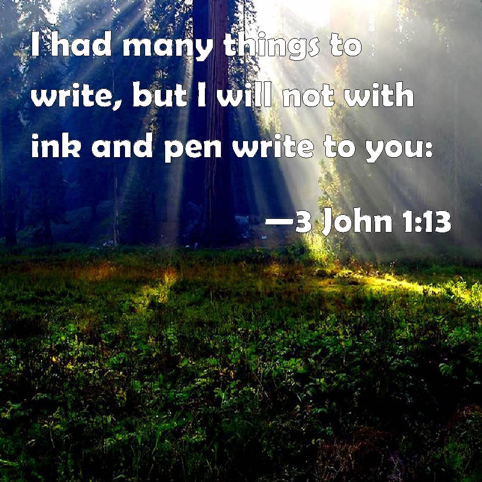 3 John 1:13 I had many things to write, but I will not with ink and pen write to you: