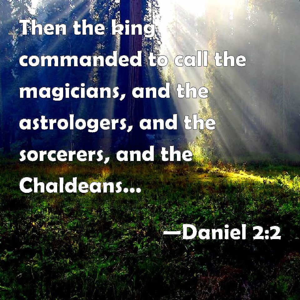 Choose a Background Daniel 2:2 Then the king commanded to call the magicians, and the astrologers, and the sorcerers, and the Chaldeans, for to show the king his dreams. So they came and stood before the king. KJV: Then the king commanded to call the magicians, and the astrologers, and the sorcerers, and the Chaldeans, for to shew the king his dreams. So they came and stood before the king. DRB: Then the king commanded to call together the diviners and the wise men, and the magicians, and the Chaldeans: to declare to the king his dreams: so they came and stood before the king. DBT: And the king commanded to call the scribes, and the magicians, and the sorcerers, and the Chaldeans, to shew the king his dreams; and they came and stood before the king. ERV: Then the king commanded to call the magicians, and the enchanters, and the sorcerers, and the Chaldeans, for to tell the king his dreams. So they came in and stood before the king. WBT: Then the king commanded to call the magicians, and the astrologers, and the sorcerers, and the Chaldeans, to show the king his dream. So they came and stood before the king. WEB: Then the king commanded to call the magicians, and the enchanters, and the sorcerers, and the Chaldeans, to tell the king his dreams. So they came in and stood before the king. YLT: and the king saith to call for scribes, and for enchanters, and for sorcerers, and for Chaldeans, to declare to the king his dreams. And they come in and stand before the king;Links Daniel 2:2 NIV • Daniel 2:2 NLT • Daniel 2:2 ESV • Daniel 2:2 NASB • Daniel 2:2 KJV • Daniel 2:2 Interlinear • Daniel 2:2 Commentaries • Daniel 2:2 Parallel Texts • Daniel 2:2 Bible Apps • Daniel 2:2 Parallel • Bible Hub |