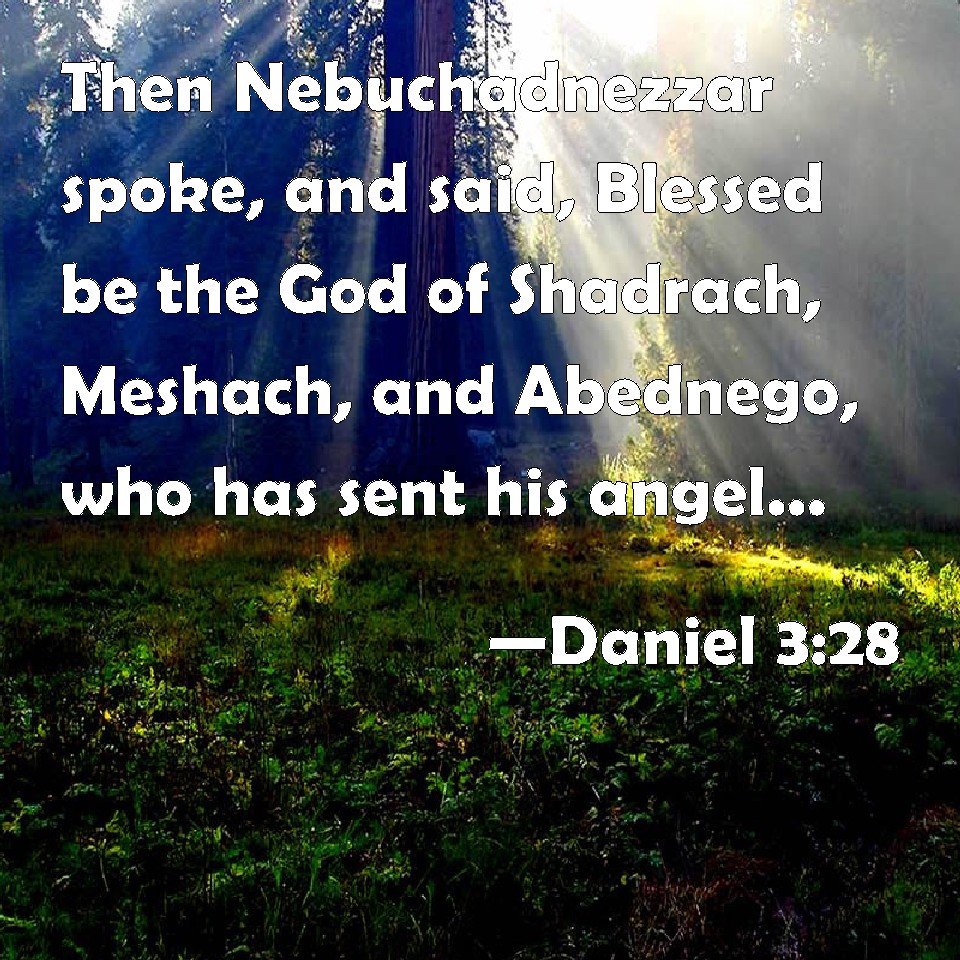 Choose a Background Daniel 3:28 Then Nebuchadnezzar spoke, and said, Blessed be the God of Shadrach, Meshach, and Abednego, who has sent his angel, and delivered his servants that trusted in him, and have changed the king's word, and yielded their bodies, that they might not serve nor worship any god, except their own God. KJV: Then Nebuchadnezzar spake, and said, Blessed be the God of Shadrach, Meshach, and Abednego, who hath sent his angel, and delivered his servants that trusted in him, and have changed the king's word, and yielded their bodies, that they might not serve nor worship any god, except their own God. DRB: Then Nabuchodonosor breaking forth, said: Blessed be the God of them, to wit, of Sidrach, Misach, and Abdenago, who hath sent his angel, and delivered his servants that believed in him: and they changed the king's word, and delivered up their bodies that they might not serve, nor adore any god, except their own God. DBT: Nebuchadnezzar spoke and said, Blessed be the God of Shadrach, Meshach, and Abed-nego, who hath sent his angel, and delivered his servants who trusted in him, and who changed the king's word, and yielded their bodies, that they might not serve nor worship any god, except their own God! ERV: Nebuchadnezzar spake and said, Blessed be the God of Shadrach, Meshach, and Abed-nego, who hath sent his angel, and delivered his servants that trusted in him, and have changed the king's word, and have yielded their bodies, that they might not serve nor worship any god, except their own God. WBT: Then Nebuchadnezzar spoke, and said, Blessed be the God of Shadrach, Meshach, and Abed-nego, who hath sent his angel, and delivered his servants that trusted in him, and have changed the king's word, and yielded their bodies, that they might not serve nor worship any god, except their own God. WEB: Nebuchadnezzar spoke and said, Blessed be the God of Shadrach, Meshach, and Abednego, who has sent his angel, and delivered his servants who trusted in him, and have changed the king's word, and have yielded their bodies, that they might not serve nor worship any god, except their own God. YLT: Nebuchadnezzar hath answered and hath said, 'Blessed is the God of Shadrach, Meshach, and Abed-Nego, who hath sent His messenger, and hath delivered His servants who trusted on Him, and the word of the king changed, and gave up their bodies that they might not serve nor do obeisance to any god except to their own God.Links Daniel 3:28 NIV • Daniel 3:28 NLT • Daniel 3:28 ESV • Daniel 3:28 NASB • Daniel 3:28 KJV • Daniel 3:28 Interlinear • Daniel 3:28 Commentaries • Daniel 3:28 Parallel Texts • Daniel 3:28 Bible Apps • Daniel 3:28 Parallel • Bible Hub |