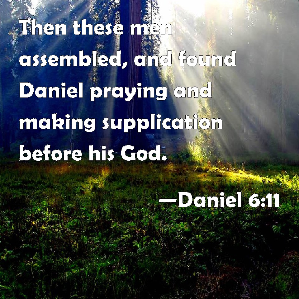 Daniel 6:11 Then these men assembled, and found Daniel praying and making supplication before his God.