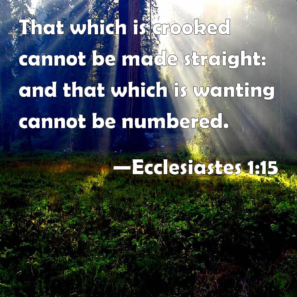 Ecclesiastes 1:15 That which is crooked cannot be made straight: and that which is wanting cannot be numbered.