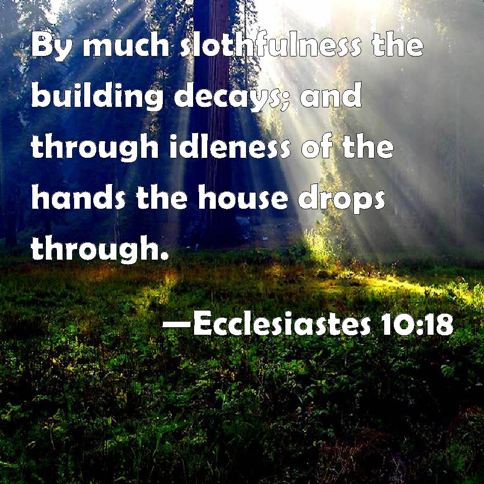 Ecclesiastes 10:18 By much slothfulness the building decays; and through idleness of the hands the house drops through.