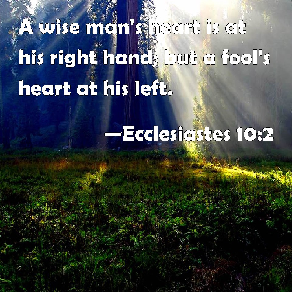 Ecclesiastes 10:2 A wise man's heart is at his right hand; but a fool's heart at his left.