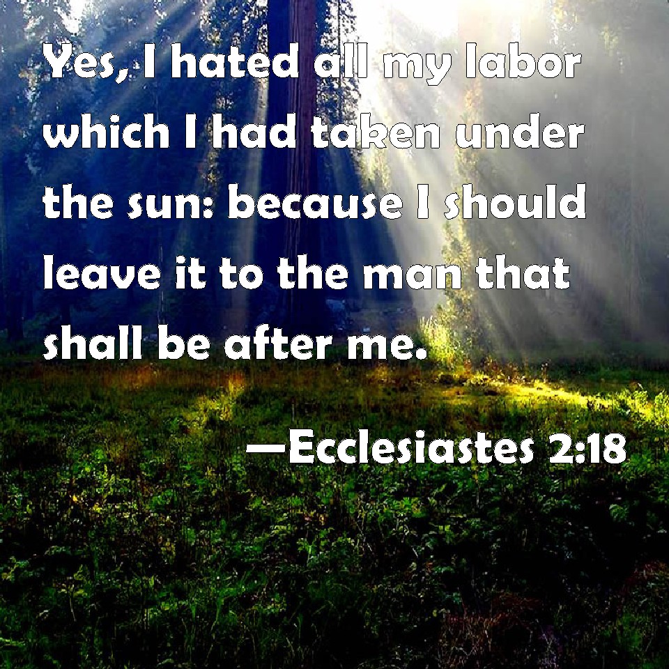 Ecclesiastes 2:18 Yes, I hated all my labor which I had taken under the sun: because I should leave it to the man that shall be after me.