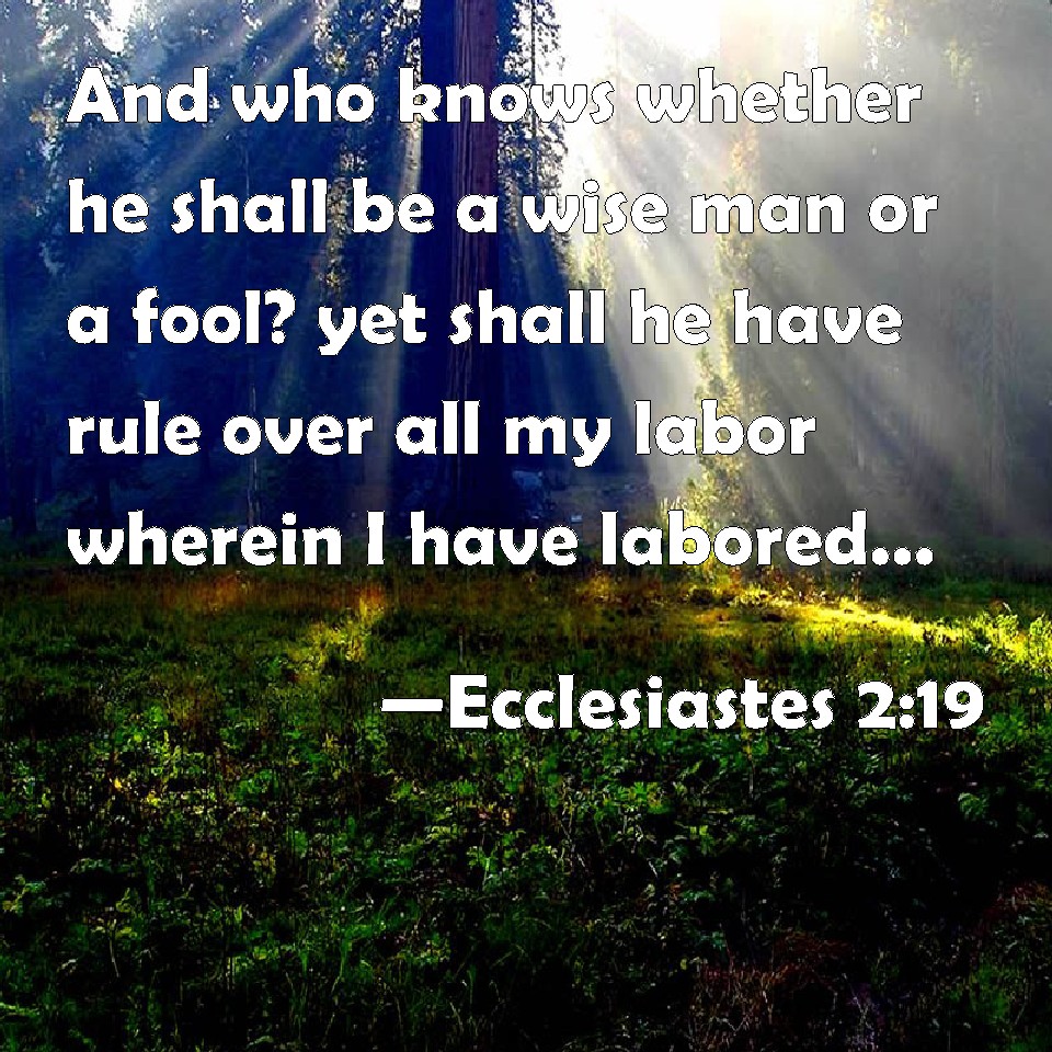 Ecclesiastes 2:19 And who knows whether he shall be a wise man or a fool? yet shall he have rule over all my labor wherein I have labored, and wherein I have showed myself wise under the sun. This is also vanity.