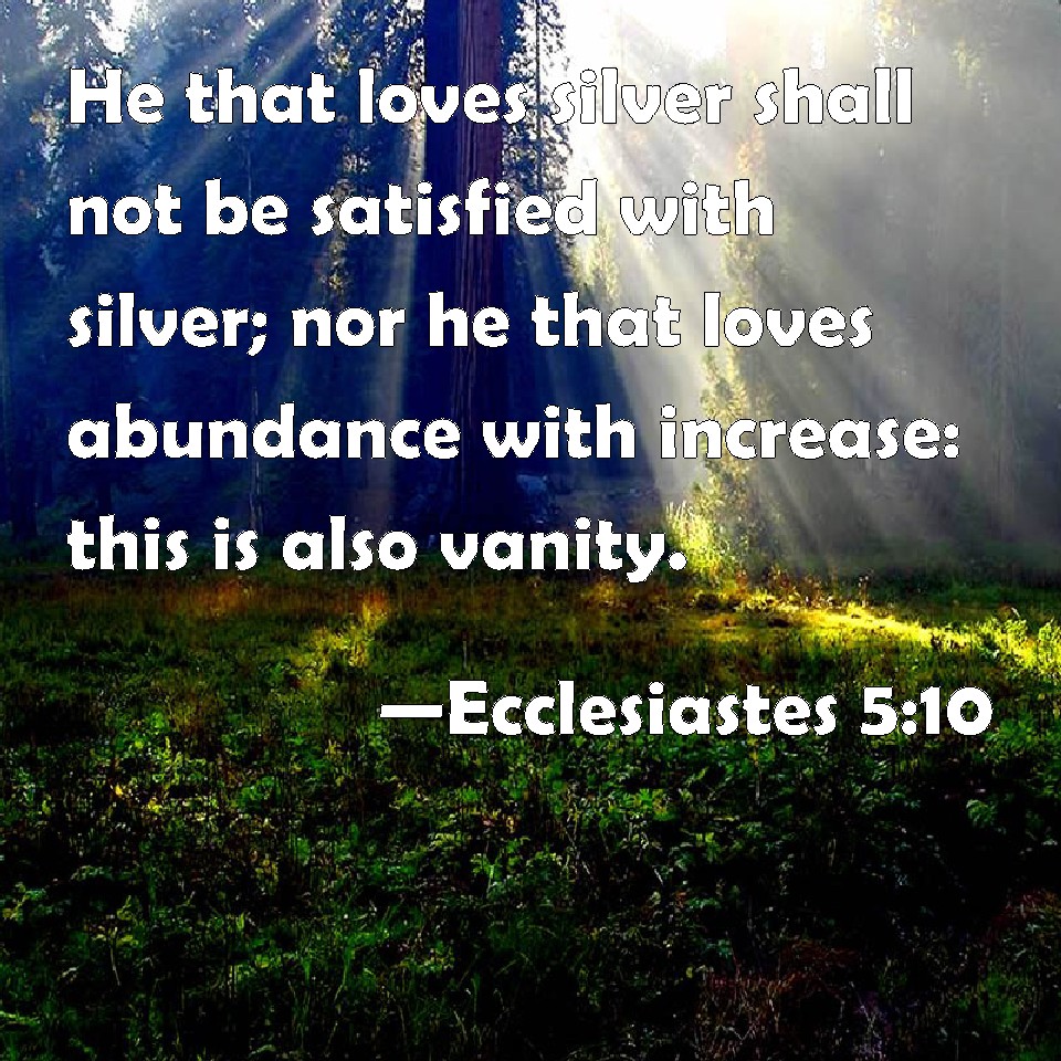 Ecclesiastes 5:10 He that loves silver shall not be satisfied with silver; nor he that loves abundance with increase: this is also vanity.