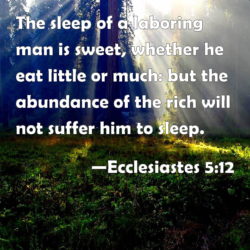 Ecclesiastes 5:12 The sleep of a laboring man is sweet, whether he eat little or much: but the abundance of the rich will not suffer him to sleep.