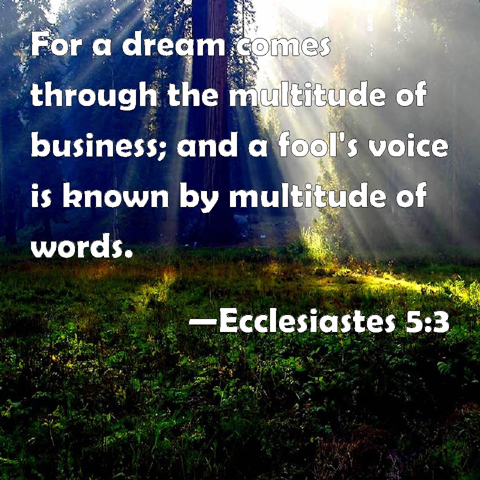 Ecclesiastes 5:3 For a dream comes through the multitude of business; and a fool's voice is known by multitude of words.