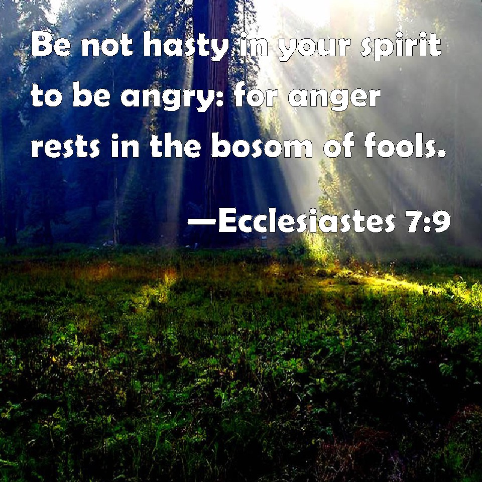 Ecclesiastes 7:9 Be not hasty in your spirit to be angry: for anger rests in the bosom of fools.