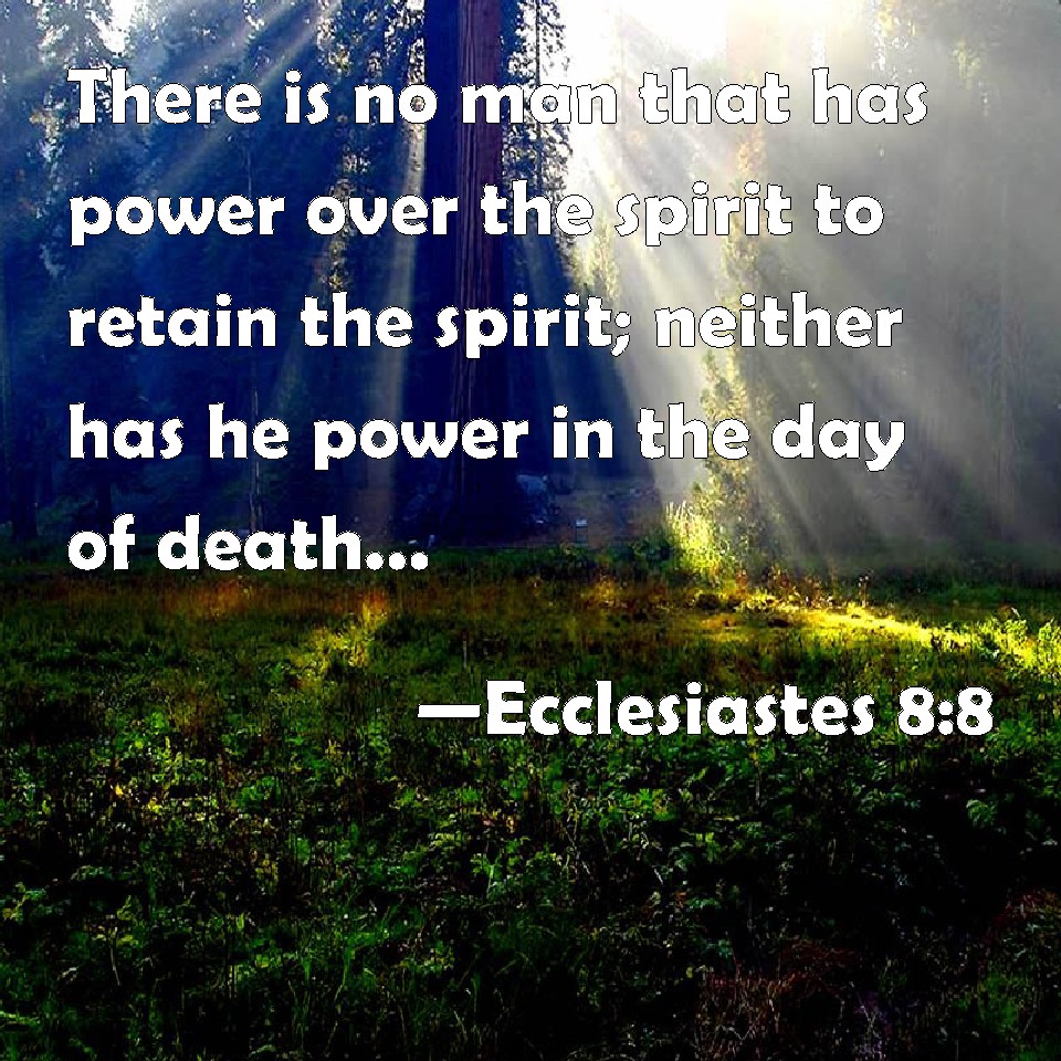 Ecclesiastes 8:8 There is no man that has power over the spirit to retain the spirit; neither has he power in the day of death: and there is no discharge in that war; neither shall wickedness deliver those that are given to it.