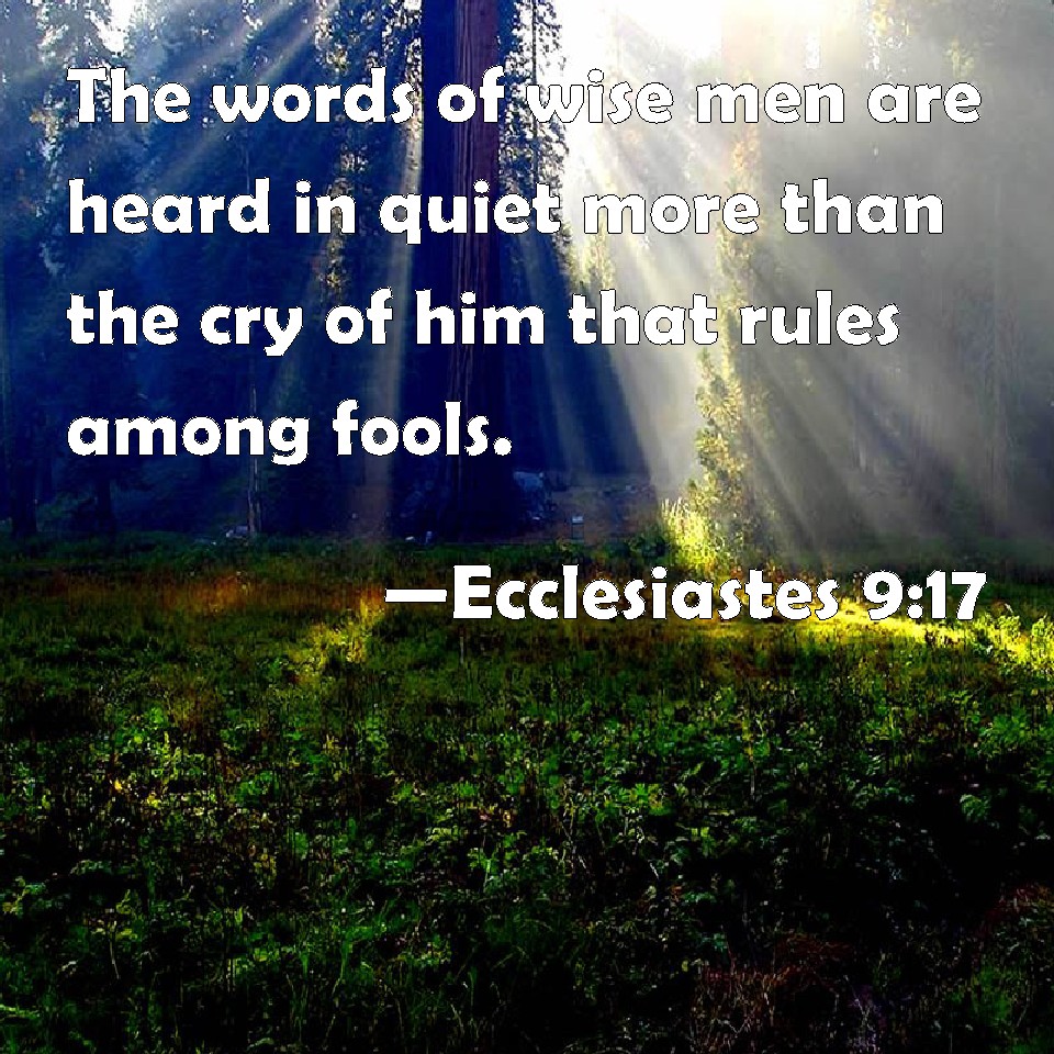 Ecclesiastes 9:17 The words of wise men are heard in quiet more than the cry of him that rules among fools.