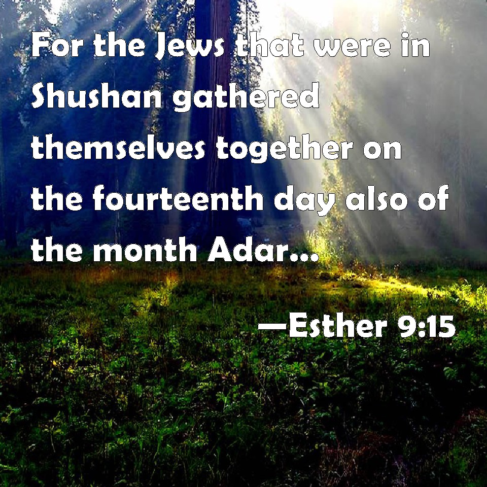 15And on the fourteenth day of the month Adar the Jews gathered themselves together, and they killed in Susan three hundred men: but they took not their substance.