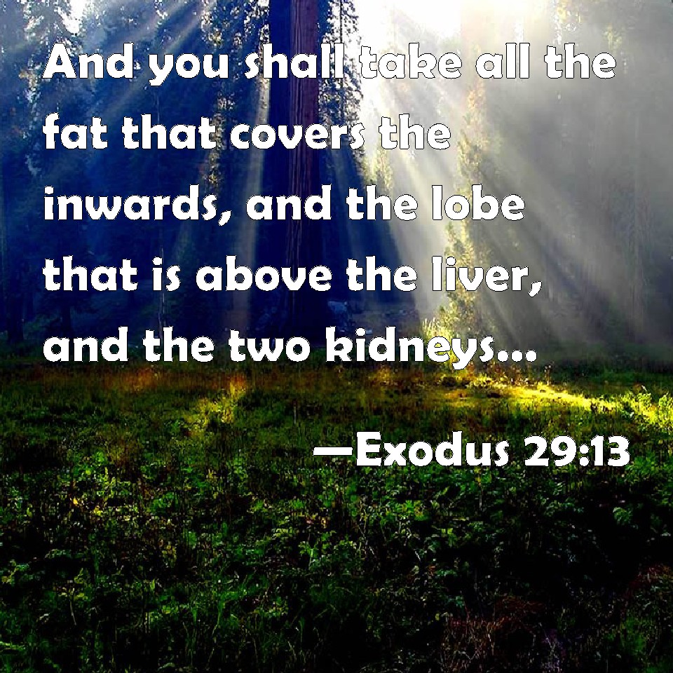 Exodus 29:13 And you shall take all the fat that covers the inwards, and the lobe that is above the liver, and the two kidneys, and the fat that is on them, and burn them on the altar.