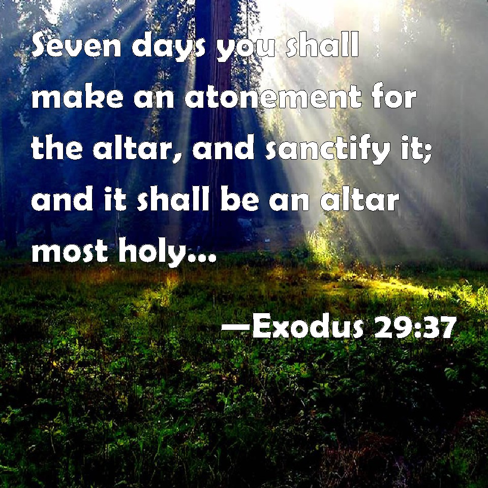 Exodus 29:37 Seven days you shall make an atonement for the altar, and sanctify it; and it shall be an altar most holy: whatever touches the altar shall be holy.