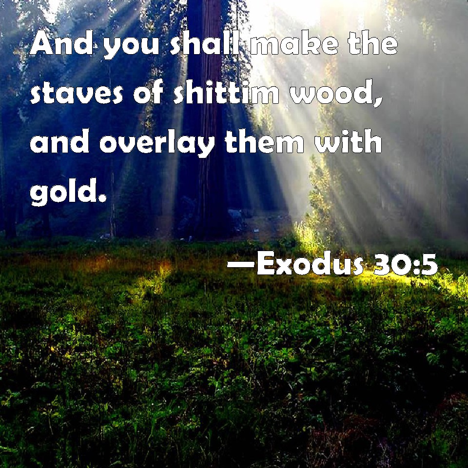 Exodus 30:5 And you shall make the staves of shittim wood, and overlay them with gold.