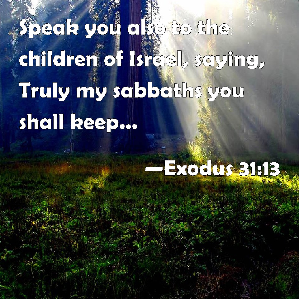 Choose a Background Exodus 31:13 Speak you also to the children of Israel, saying, Truly my sabbaths you shall keep: for it is a sign between me and you throughout your generations; that you may know that I am the LORD that does sanctify you. KJV: Speak thou also unto the children of Israel, saying, Verily my sabbaths ye shall keep: for it is a sign between me and you throughout your generations; that ye may know that I am the LORD that doth sanctify you. DRB: Speak to the children of Israel, and thou shalt say to them: See that thou keep my sabbath: because it is a sign between me and you in your generations: that you may know that I am the Lord, who sanctify you. DBT: And thou, speak thou unto the children of Israel, saying, Surely my sabbaths shall ye keep; for this is a sign between me and you throughout your generations, that ye may know that it is I, Jehovah, who do hallow you. ERV: Speak thou also unto the children of Israel, saying, Verily ye shall keep my sabbaths: for it is a sign between me and you throughout your generations; that ye may know that I am the LORD which sanctify you. WBT: Speak thou also to the children of Israel, saying, Verily my sabbaths ye shall keep: for it is a sign between me and you throughout your generations; that ye may know that I am the LORD that doth sanctify you. WEB: "Speak also to the children of Israel, saying, 'Most certainly you shall keep my Sabbaths: for it is a sign between me and you throughout your generations; that you may know that I am Yahweh who sanctifies you. YLT: And thou, speak unto the sons of Israel, saying, Only, My sabbaths ye do keep, for it is a sign between Me and you, to your generations, to know that I, Jehovah, am sanctifying you;Links Exodus 31:13 NIV • Exodus 31:13 NLT • Exodus 31:13 ESV • Exodus 31:13 NASB • Exodus 31:13 KJV • Exodus 31:13 Interlinear • Exodus 31:13 Commentaries • Exodus 31:13 Parallel Texts • Exodus 31:13 Bible Apps • Exodus 31:13 Parallel • Bible Hub |