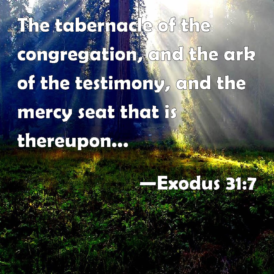 Choose a Background Exodus 31:7 The tabernacle of the congregation, and the ark of the testimony, and the mercy seat that is thereupon, and all the furniture of the tabernacle, KJV: The tabernacle of the congregation, and the ark of the testimony, and the mercy seat that is thereupon, and all the furniture of the tabernacle, DRB: The tabernacle of the covenant, and the ark of the testimony, and the propitiatory that is over it, and all the vessels of the tabernacle, DBT: the tent of meeting and the ark of the testimony, and the mercy-seat that is thereupon, and all the utensils of the tent, ERV: the tent of meeting, and the ark of the testimony, and the mercy-seat that is thereupon, and all the furniture of the Tent; WBT: The tabernacle of the congregation, and the ark of the testimony, and the mercy-seat that is upon it, and all the furniture of the tabernacle, WEB: the Tent of Meeting, the ark of the testimony, the mercy seat that is on it, all the furniture of the Tent, YLT: The tent of meeting, and the ark of testimony, and the mercy-seat which is on it, and all the vessels of the tent,Links Exodus 31:7 NIV • Exodus 31:7 NLT • Exodus 31:7 ESV • Exodus 31:7 NASB • Exodus 31:7 KJV • Exodus 31:7 Interlinear • Exodus 31:7 Commentaries • Exodus 31:7 Parallel Texts • Exodus 31:7 Bible Apps • Exodus 31:7 Parallel • Bible Hub |