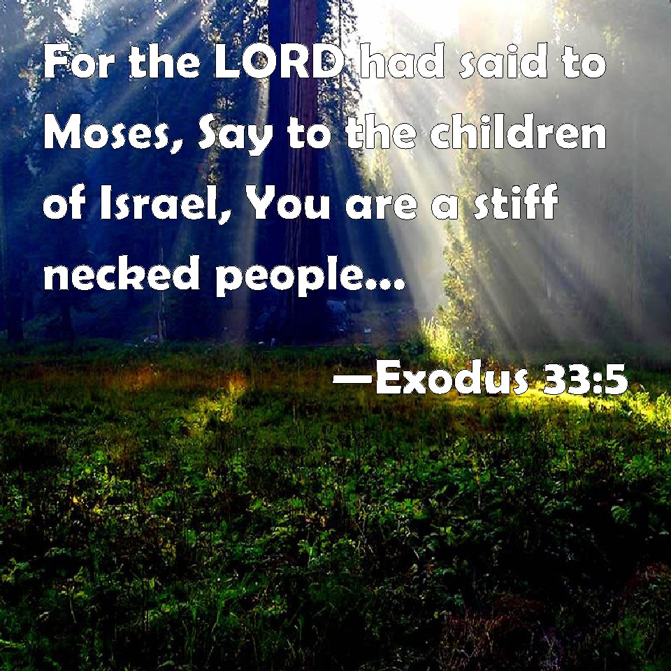 Choose a Background Exodus 33:5 For the LORD had said to Moses, Say to the children of Israel, You are a stiff necked people: I will come up into the middle of you in a moment, and consume you: therefore now put off your ornaments from you, that I may know what to do to you. KJV: For the LORD had said unto Moses, Say unto the children of Israel, Ye are a stiffnecked people: I will come up into the midst of thee in a moment, and consume thee: therefore now put off thy ornaments from thee, that I may know what to do unto thee. DRB: And the Lord said to Moses: Say to the children of Israel: Thou are a stiffnecked people; once I shall come up in the midst of thee, and shall destroy thee. Now presently lay aside thy ornaments, that I may know what to do with thee. DBT: Now Jehovah had said to Moses, Say unto the children of Israel, Ye are a stiff-necked people: in one moment I will come up into the midst of thee and will consume thee. And now put off thine ornaments from thee, and I will know what I will do unto thee. ERV: And the LORD said unto Moses, Say unto the children of Israel, Ye are a stiffnecked people: if I go up into the midst of thee for one moment, I shall consume thee: therefore now put off thy ornaments from thee, that I may know what to do unto thee. WBT: For the LORD had said to Moses, Say to the children of Israel, Ye are a stiff-necked people: I will come up into the midst of thee in a moment, and consume thee: therefore now put off thy ornaments from thee, that I may know what to do to thee. WEB: Yahweh said to Moses, "Tell the children of Israel, 'You are a stiff-necked people. If I were to go up into your midst for one moment, I would consume you. Therefore now take off your jewelry from you, that I may know what to do to you.'" YLT: And Jehovah saith unto Moses, 'Say unto the sons of Israel, Ye are a stiff-necked people; one moment — I come up into thy midst, and have consumed thee; and now, put down thine ornaments from off thee, and I know what I do to thee;'Links Exodus 33:5 NIV • Exodus 33:5 NLT • Exodus 33:5 ESV • Exodus 33:5 NASB • Exodus 33:5 KJV • Exodus 33:5 Interlinear • Exodus 33:5 Commentaries • Exodus 33:5 Parallel Texts • Exodus 33:5 Bible Apps • Exodus 33:5 Parallel • Bible Hub |