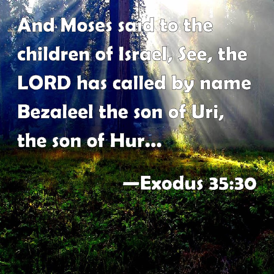 Choose a Background Exodus 35:30 And Moses said to the children of Israel, See, the LORD has called by name Bezaleel the son of Uri, the son of Hur, of the tribe of Judah; KJV: And Moses said unto the children of Israel, See, the LORD hath called by name Bezaleel the son of Uri, the son of Hur, of the tribe of Judah; DRB: And Moses said to the children of Israel: Behold the Lord hath called by name Beseleel the son of Uri the son of Hur of the tribe of Juda. DBT: And Moses said to the children of Israel, See, Jehovah has called by name Bezaleel the son of Uri, the son of Hur, of the tribe of Judah, ERV: And Moses said unto the children of Israel, See, the LORD hath called by name Bezalel the son of Uri, the son of Hur, of the tribe of Judah; WBT: And Moses said to the children of Israel, See, the LORD hath called by name Bezaleel, the son of Uri, the son of Hur, of the tribe of Judah; WEB: Moses said to the children of Israel, "Behold, Yahweh has called by name Bezalel the son of Uri, the son of Hur, of the tribe of Judah. YLT: And Moses saith unto the sons of Israel, 'See, Jehovah hath called by name Bezaleel, son of Uri, son of Hur, of the tribe of Judah,Links Exodus 35:30 NIV • Exodus 35:30 NLT • Exodus 35:30 ESV • Exodus 35:30 NASB • Exodus 35:30 KJV • Exodus 35:30 Interlinear • Exodus 35:30 Commentaries • Exodus 35:30 Parallel Texts • Exodus 35:30 Bible Apps • Exodus 35:30 Parallel • Bible Hub |
